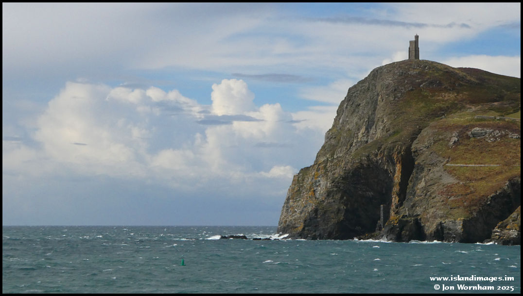 Zooming in on Bradda Head with a big cloud build-up in the direction of Scotland. The green buoy marks the end of 'Governor Loch's Breakwater' constructed by 1876 but destroyed in a storm in 1884.