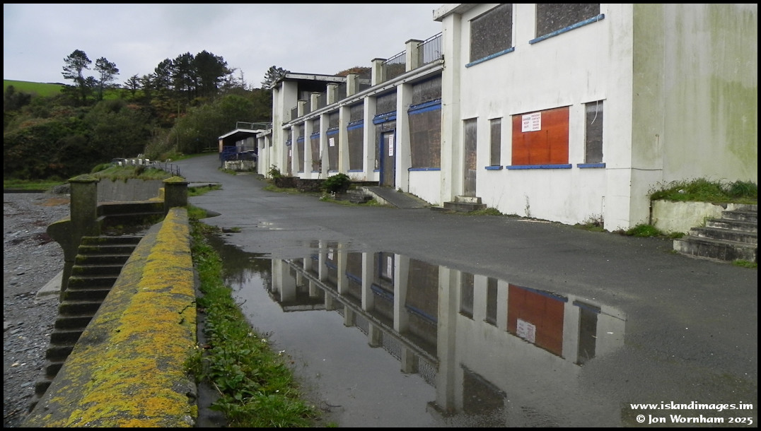 A rather melancholy scene with the old pub buildings at Port Soderick reflected in a puddle on the 23rd of October 2011. The site has since been cleared, but once was a bustling mini resort served by railway, tramway and boat from Douglas.