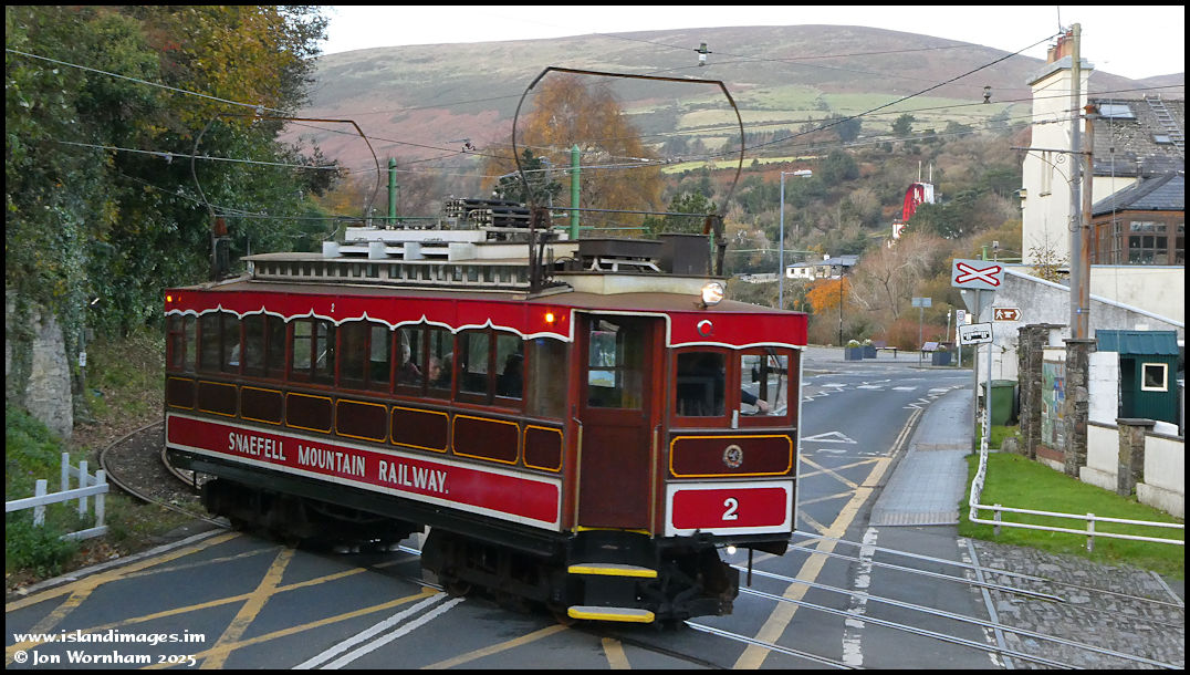 Snaefell Car No 2 crosses the main road.