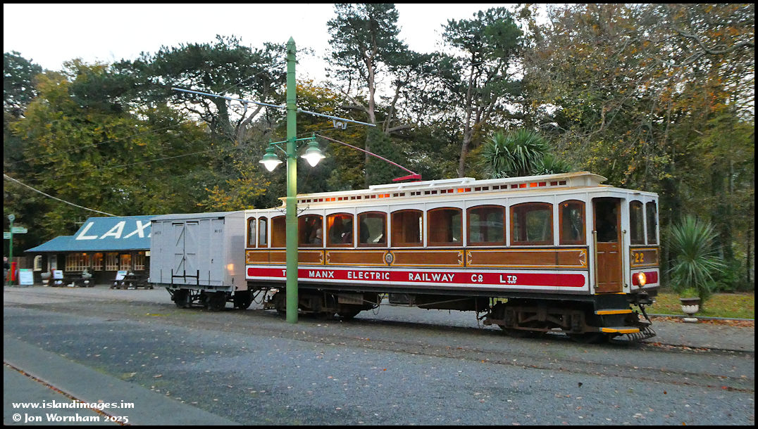 Car No 21 stands with Van No 11 in Laxey Station.