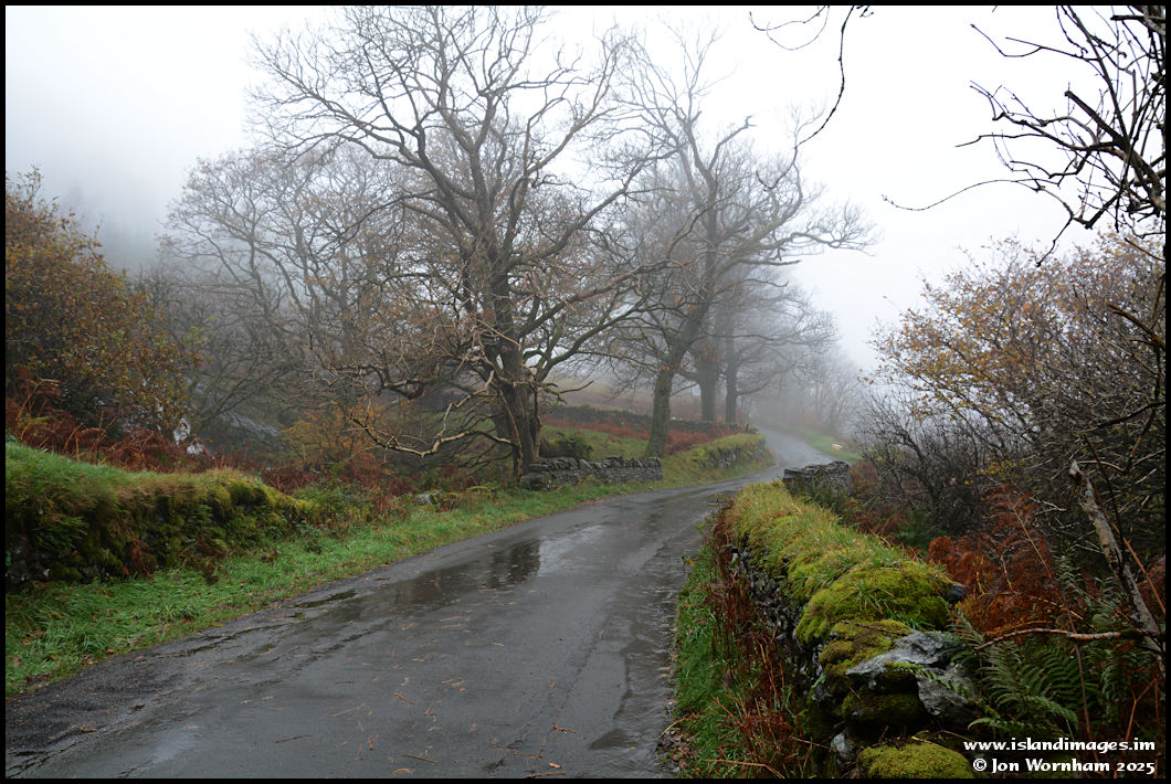 Walking up a very wet road (flooded in places on the way) from where I parked the car.