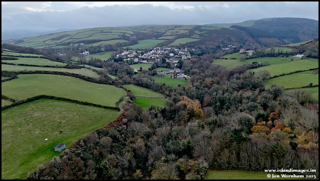 Flying over the gorge to get this picture of Glen Maye and the village beyond, which is sometimes written just as Glenmaye.