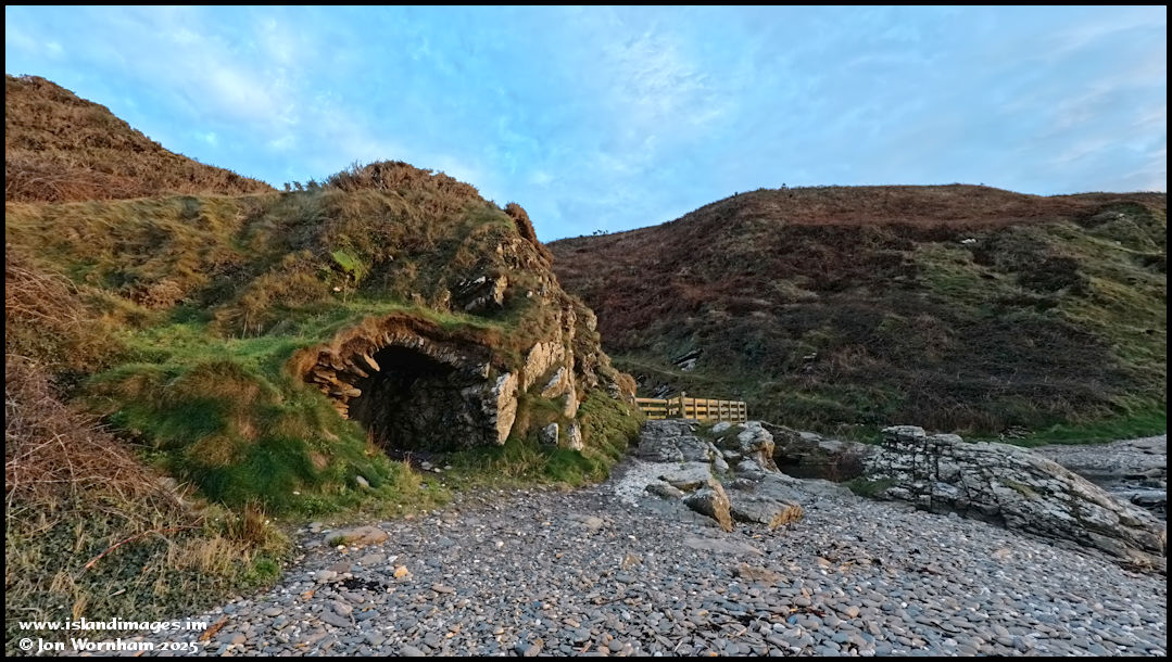 An old lime kiln at the back of the beach now serves as a shelter.