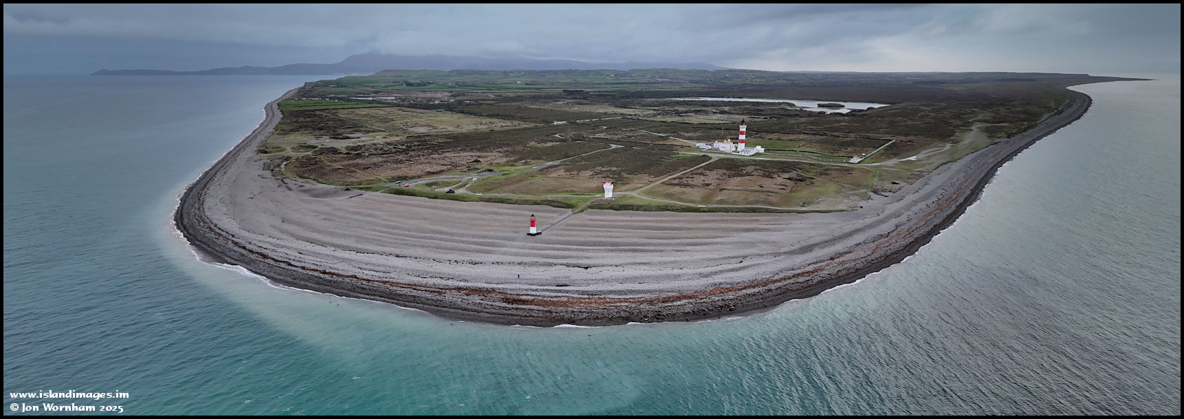 Two single images stitched together for this view looking south over the Point of Ayre, with low cloud covering many of the mountains in the distance.