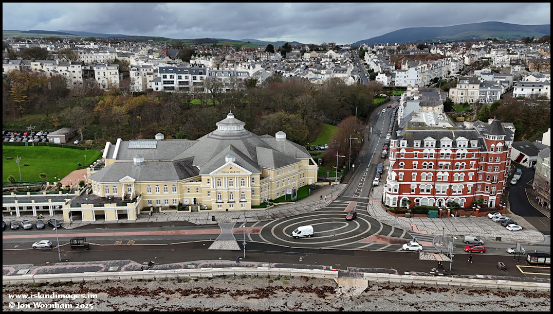 A lower level view of the Villa Marina and Broadway. At one time a cable tramway (like they have in San Francisco, USA) used to run from close to the Sea Terminal, then via Upper Douglas and back down Broadway to terminate here.