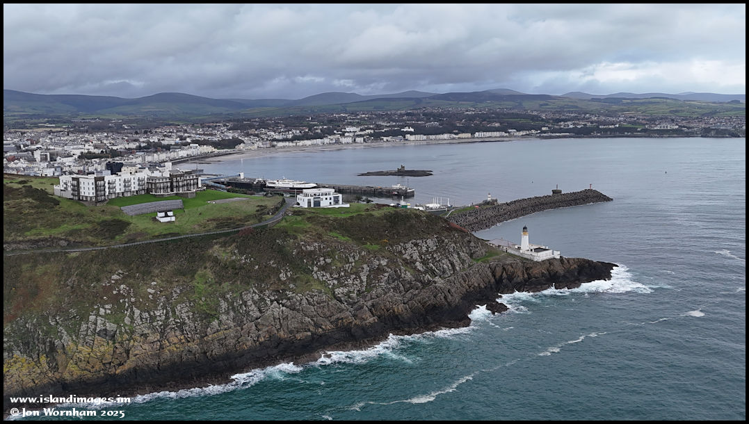 Moving the angle around to get the Toer of Refuge more into the frame. I've seen a rain shower approaching over the sea, so need to bring the drone back for a landing!