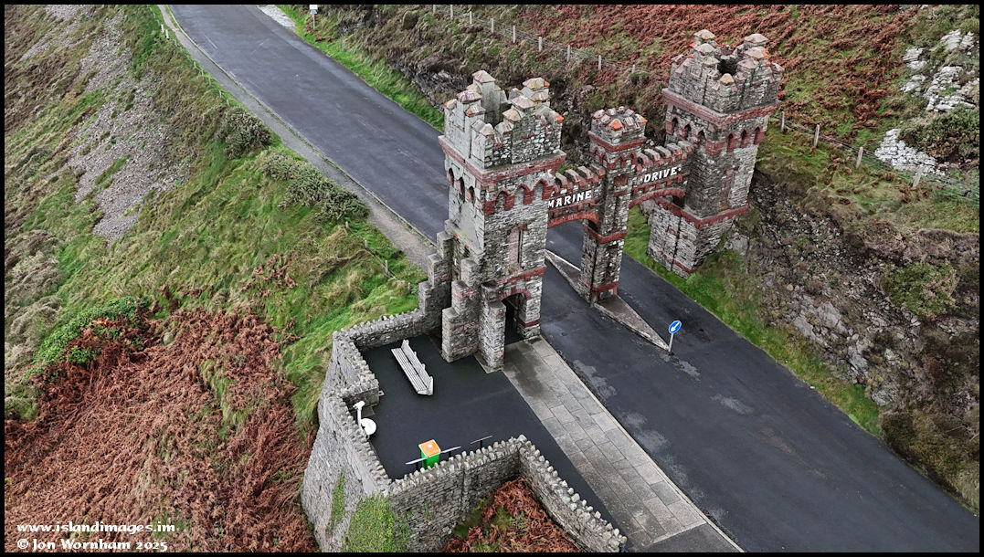 The Marine Drive Archway. When the Douglas Southern Electric Tramway was operating (it closed for ever in September 1939), trams used the land side arch and carriages and motor cars the sea side one. Pedestrians had their own little arch.