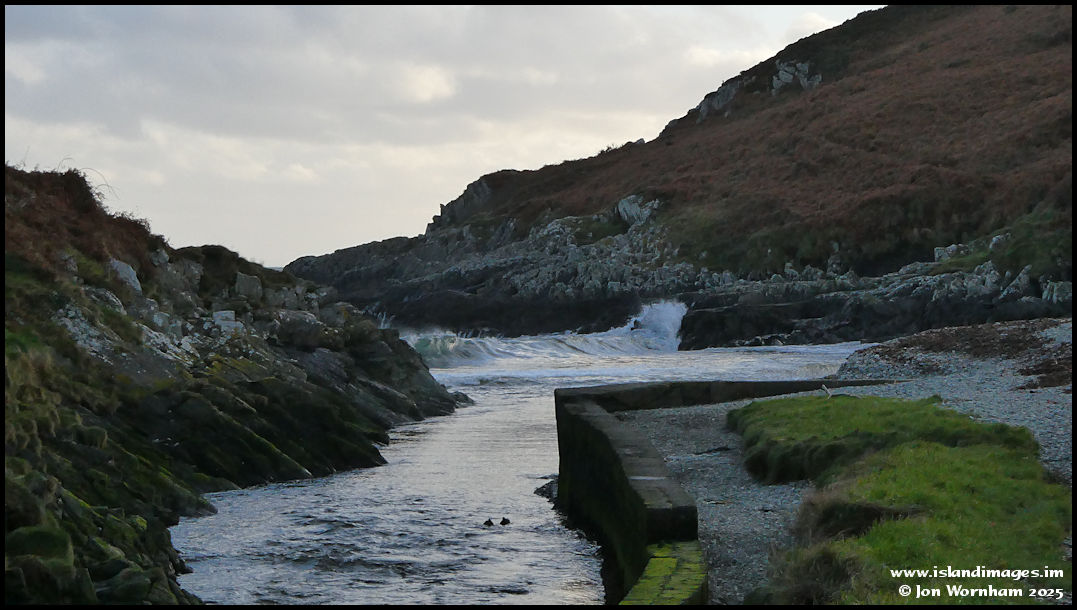 Walking from the car park and down to the beach at Groudle and it looks like there are some quite big waves being channelled into the bay.