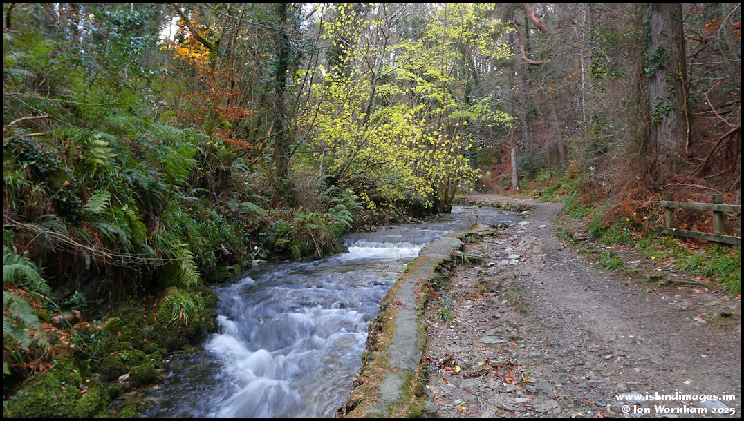 Continuing alongside the main river. Although a lot of the trees have lost their leaves now, there are occasional patches of colour along the banks.
