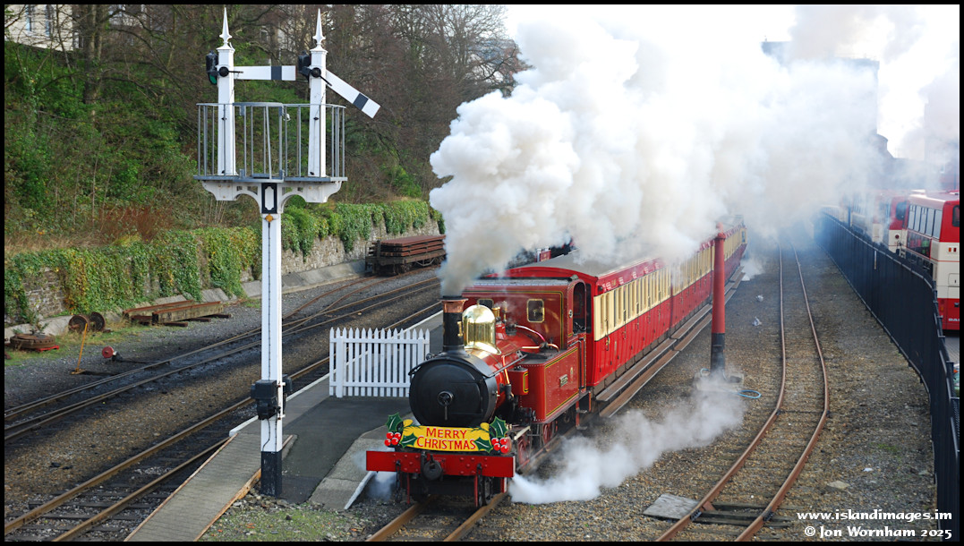 Plenty of smoke and steam from 'Kissack' departing from Douglas on a seasonal train to Castletown on the 3rd of December 2011. Out of sight but banking at the rear was 'G.H Wood'.