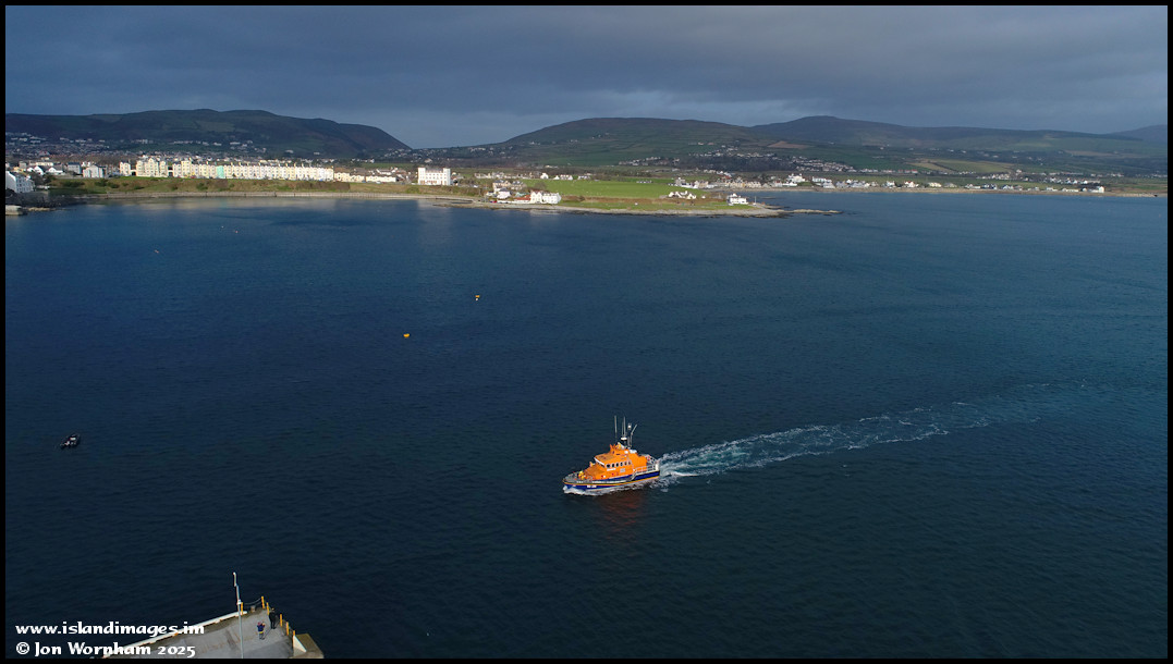 Port St Mary lifeboat captured from a drone returning to harbour on the 3rd of December 2017.