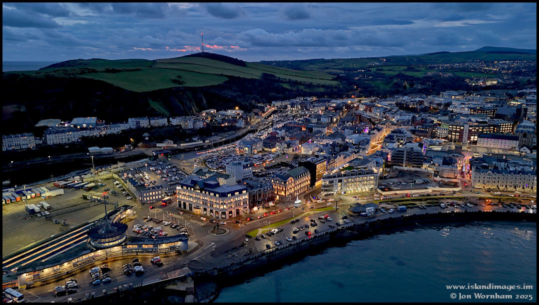 'Downtown Douglas' and the Sea Terminal photographed with a drone at dusk on the 3rd of December 2024. This is the last of my '25 Years of Island Images' pictures, I hope that you've enjoyed viewing them as much as I enjoyed editing them!