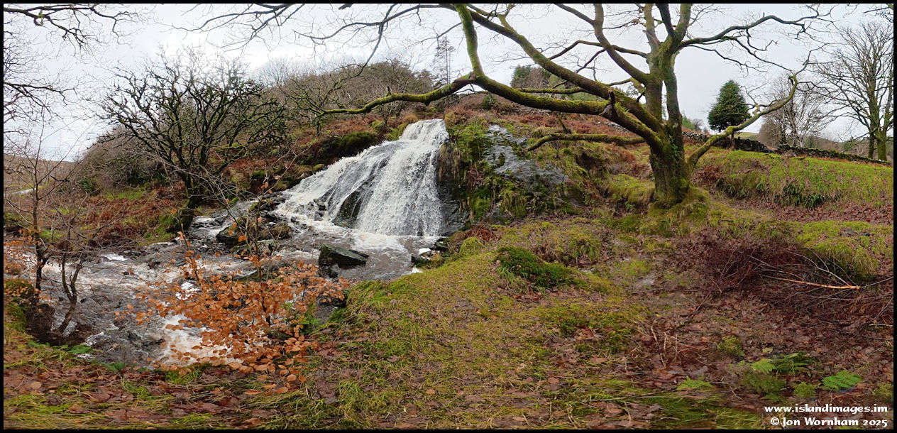 A wide format view of the waterfall from the north side.