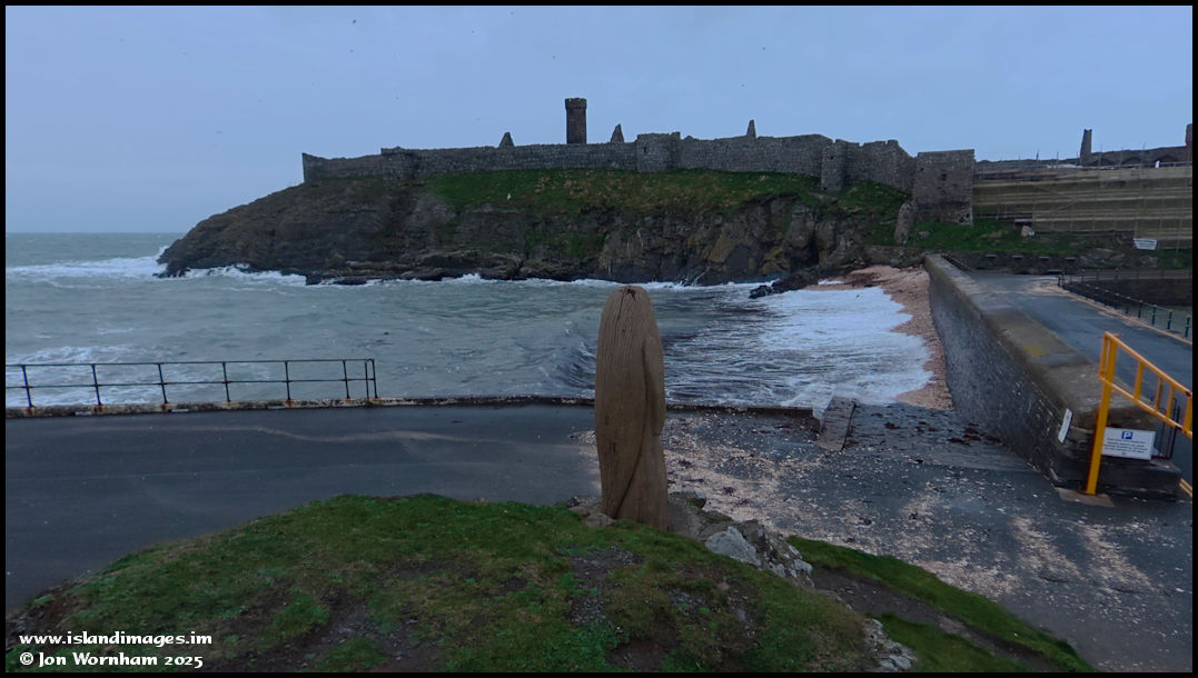 There wasn't much of Fenella Beach to be seen as high tide approaches, with occasional waves splashing over the sea wall onto the road. Part of the beach had been deposited on the car park entrance!