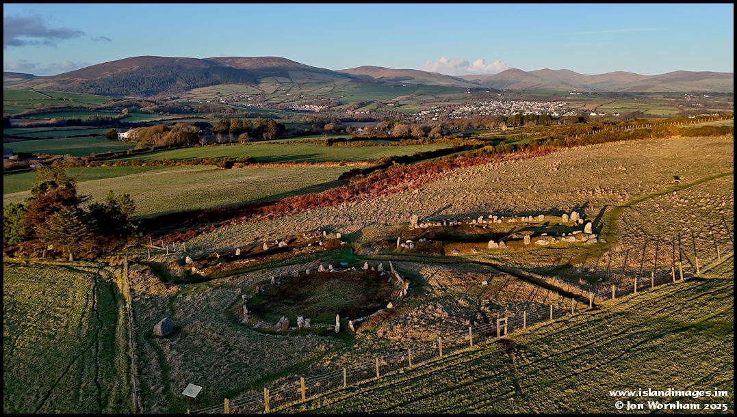 The Braaid ancient settlement. I had hoped for some long shadows cast from the stones by the setting sun, but hadn't factored in that a fairly distant copse of trees would be casting a shadow over the roundhouse.