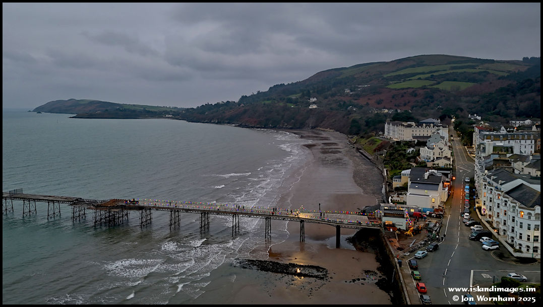 Looking across the restored section of Queen's Pier with Maughold Head in the distance. The pier is being restored by a team of volunteers after being allowed to decay for many years by the government.