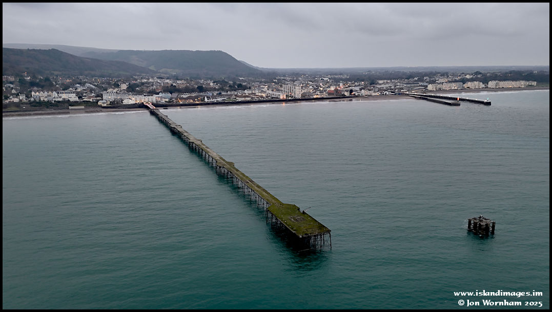 Looking back along the length of the pier to the town, with the harbour breakwaters over to the right.