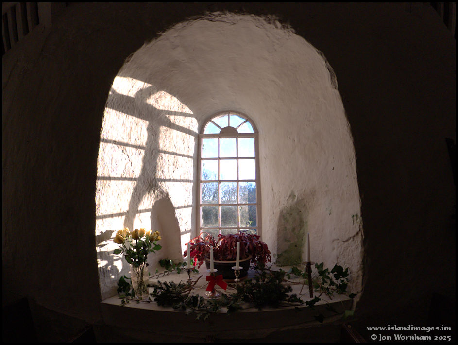 A cloer view of the central window with its decorations. Look how thick the walls are!