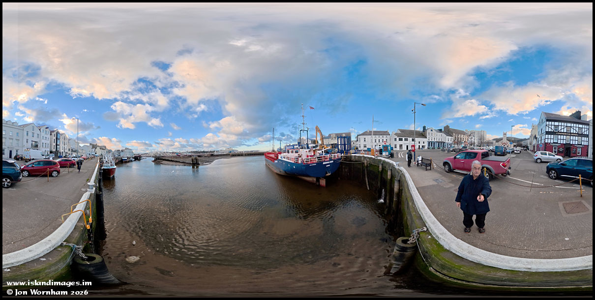 Arriving at Ramsey I stopped for a quick panoramic view of the harbour at low tide before we headed into the shops. Mezeron's 'Snaefell River' sits on the bottom at the commercial quay.