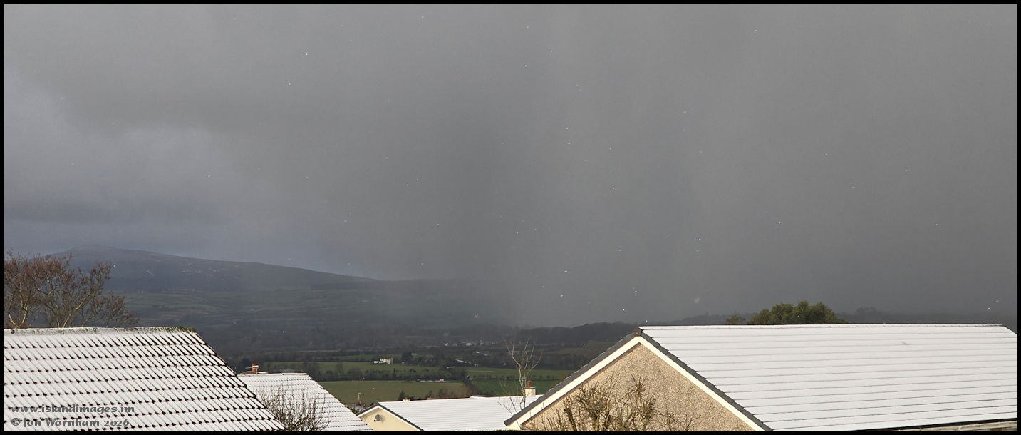 Not much to see to the west here as another snow shower sweeps across the centre of the island. South Barrule just visible over on the left.