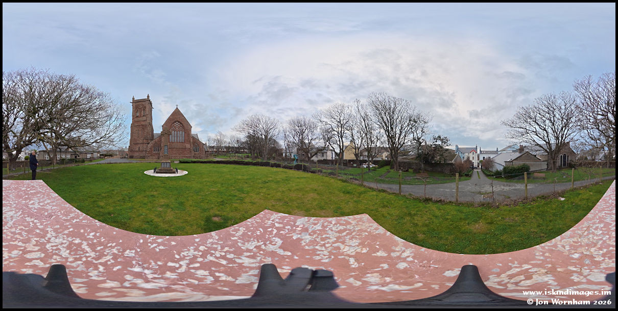An external panorama in the cathedral grounds. The building here was constructed between 1879 - 1884 and at one time featured a spire on top of the tower, later removed when the tower was becoming unstable.
