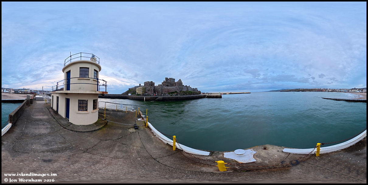 This panorama was taken standing on the end of the extension of the east quay, that protects the inner harbour entrance. The building here replaced an earlier harbour lighthouse.