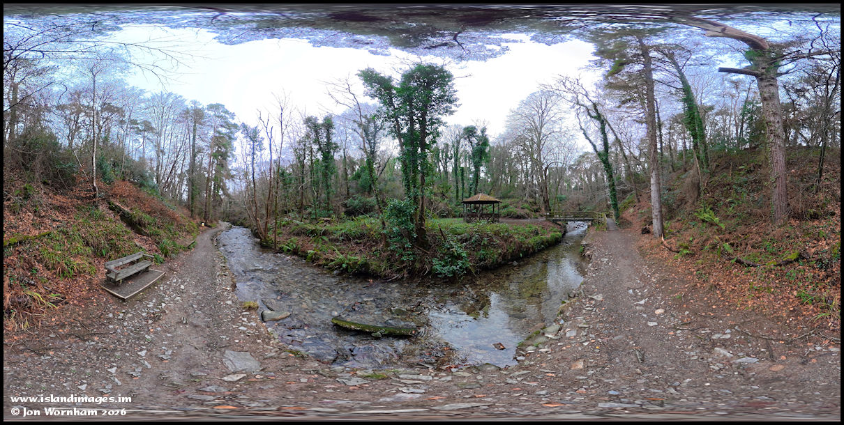 The little shelter on the far side of the river is a reminder that in the glen's heyday, there was a dance floor located here complete with bandstand for the musicians.