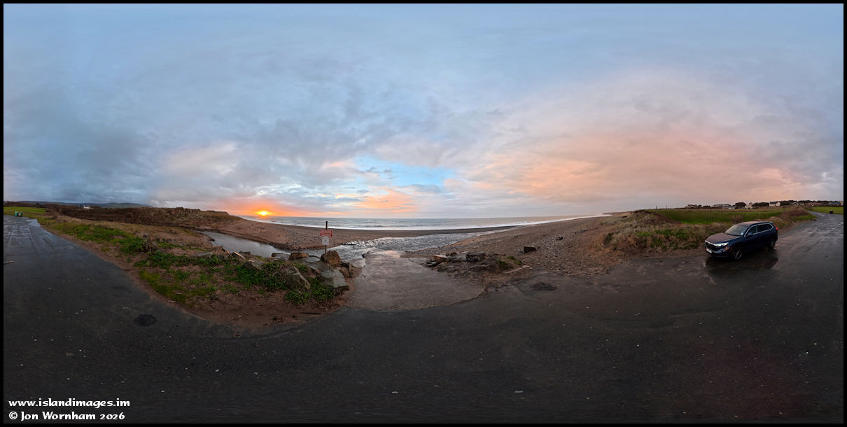 The full 360 degree panorama shot from the car park at Ballaugh Shore where the river runs across the beach and into the sea.