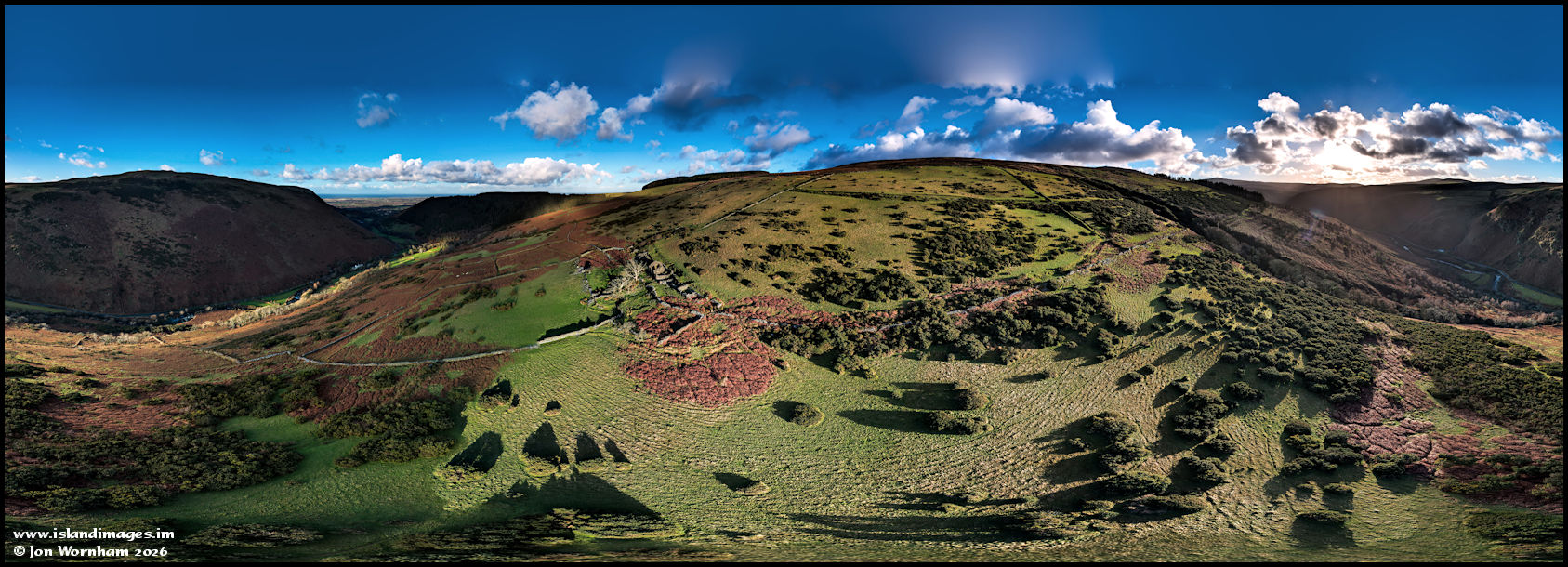 This second 360 degree panorama at Sulby Glen highlights the Ballamish tholtan,