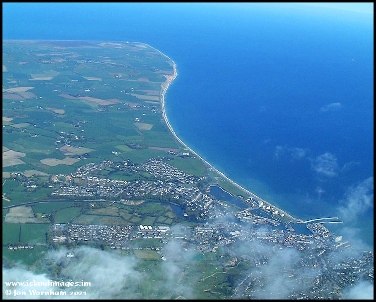Seems like I'm over the clouds here, looking back north past Ramsey and to the Point of Ayre.