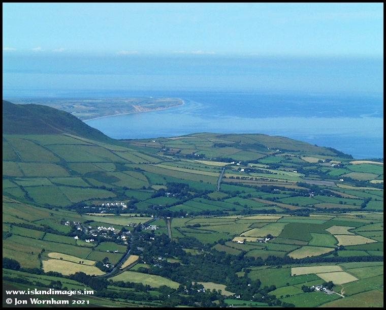 Glen Mona is in the foreground here with North Barrule rising on the left. The Bride Cliffs and Point of Ayre in the distance.