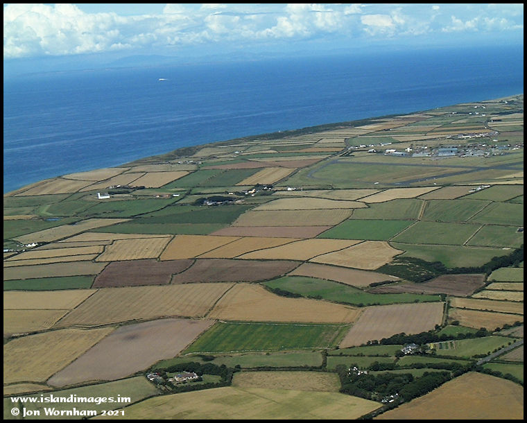 Traditional agricultural fields near Jurby, with the southern Scottish mountains visible on the horizon. Jurby Church must have been a great landmark for the pilots based at RAF Jurby during WW2.