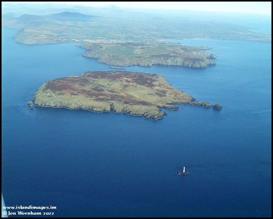 Rounding the Calf of Man, with the Chicken Rock Lighthouse to its south.