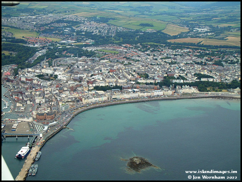 Looking across the Conister Rock to the town. Apart from the Seacat Isle of Man, it looks like there are three Royal Navy minehunters on the Victoria Pier.