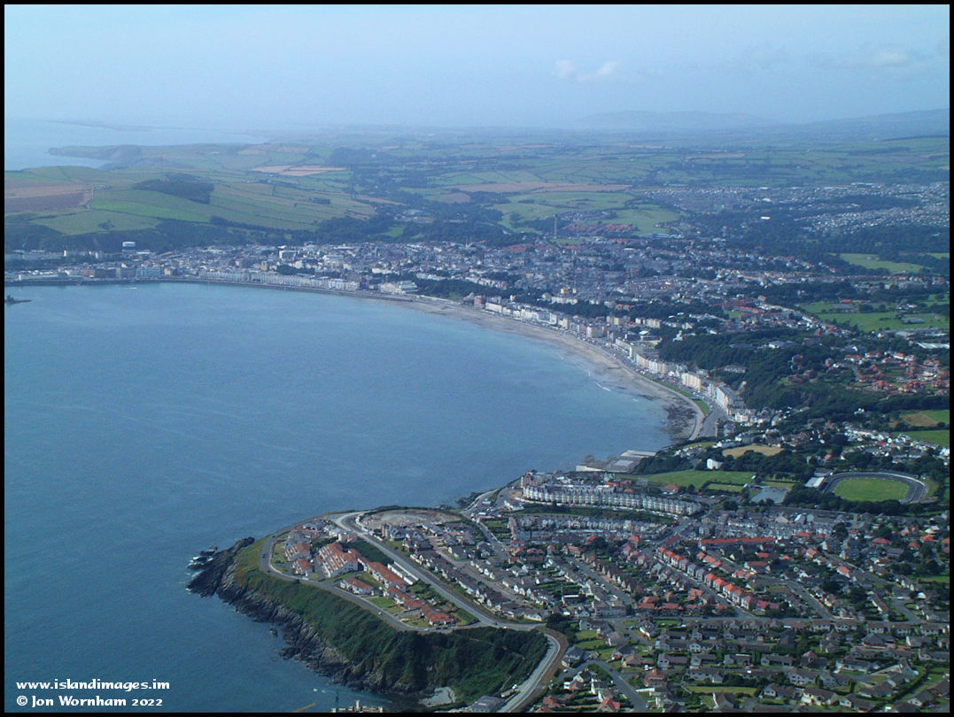 Looking back to Duoglas over Onchan Head. It's quite a hazy summer's day, but you can just see Langness in the distance.