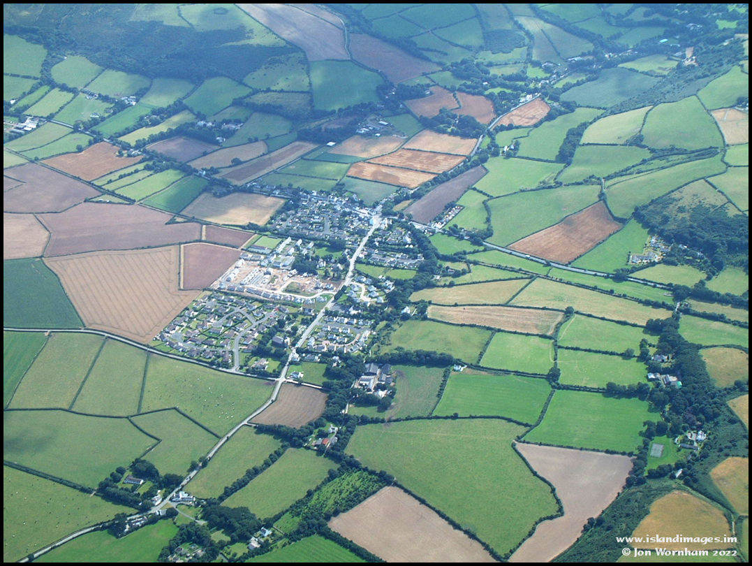 Thevillage of Ballaugh. The green space that used to be in the middle of the village is being covered by new houses.