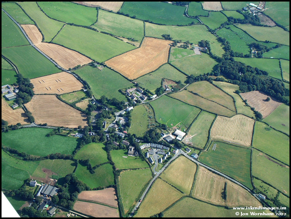 The village of Bride from another angle. The road to the Point of Ayre leaves the picture at its top left corner. The road to the bottom right is to Ramsey.
