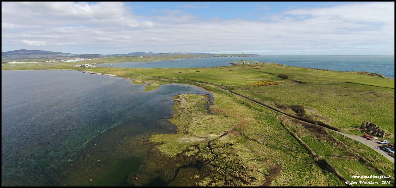 Overhead the slat marshes at Langness looking north to Ronaldsway