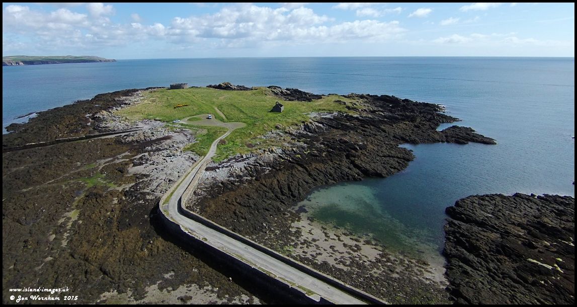 St Michael's Island, with the 12th century chapel and 17th century Civil War fort visible