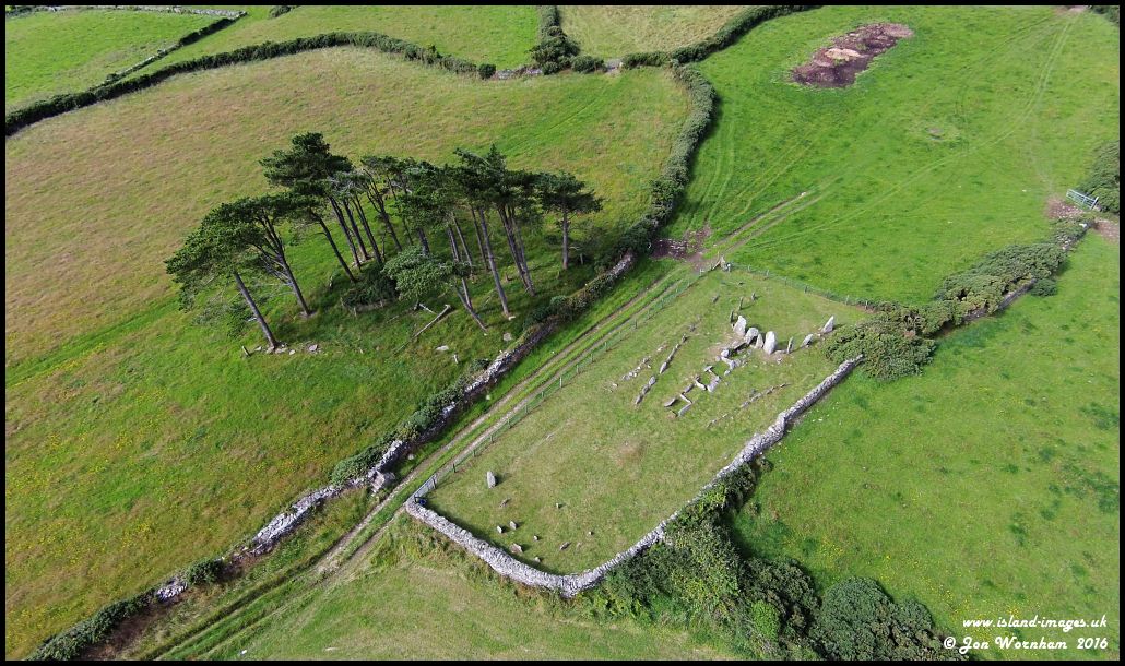 Almost vertical view of Cashtal yn Ard, showing the layout of the stones
