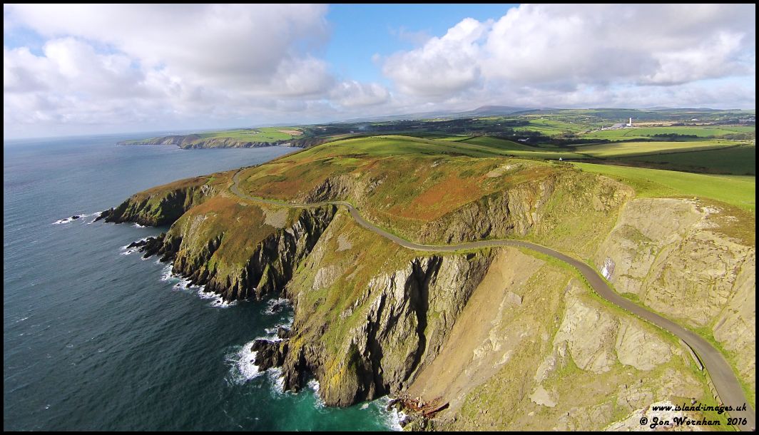 Port Wallberry. The remains of the Douglas Southern Electric Tramway's viaduct can still be seen at the bottom of the cliff. The roadway was constructed but cutting into the rock face, opening in 1963