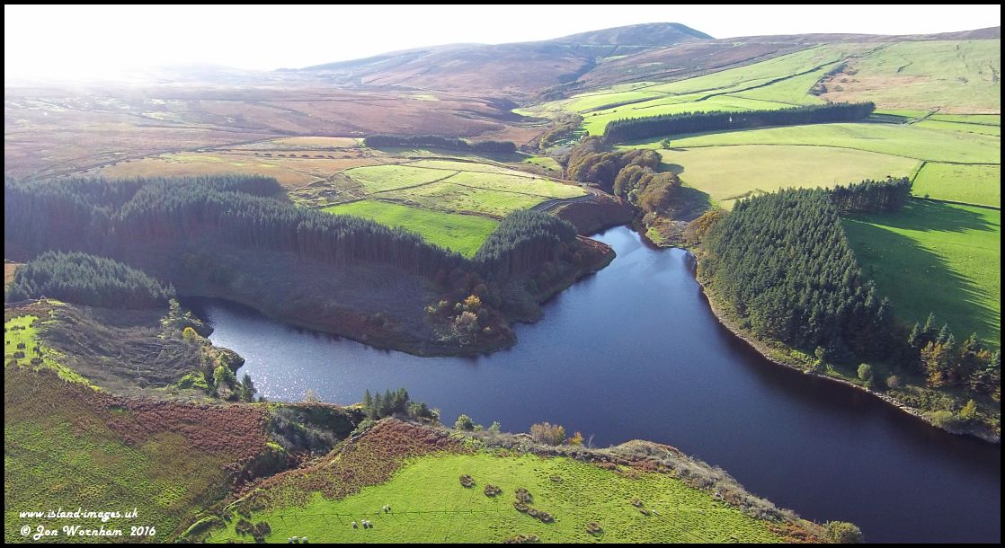 The south and south-west legs of Sulby Reservoir, the latter leading to Druidale