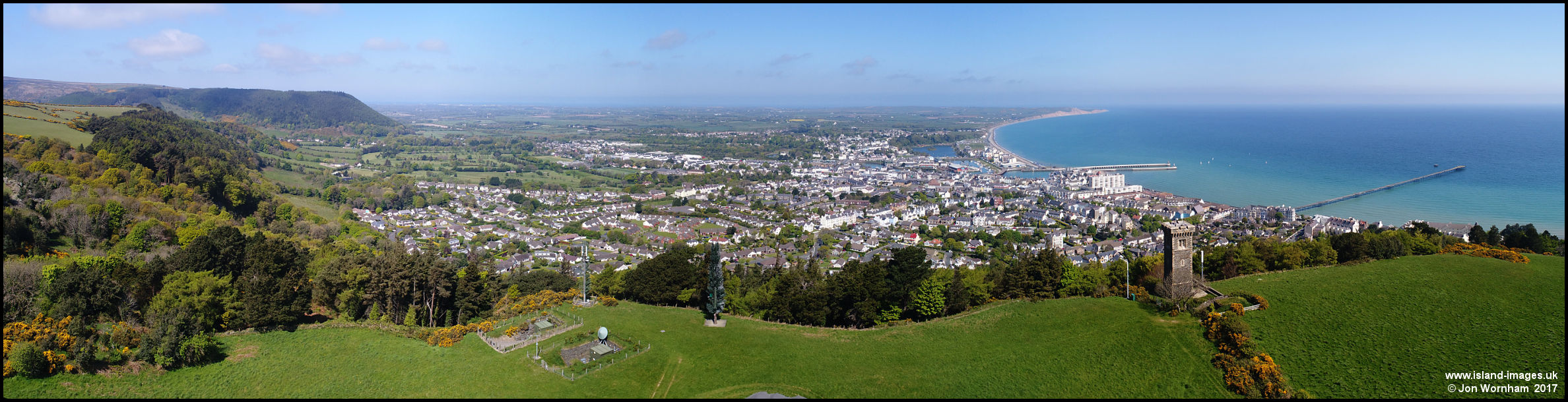 A panorama of Ramsey taken from overhead Lherghy Frissell looking north.