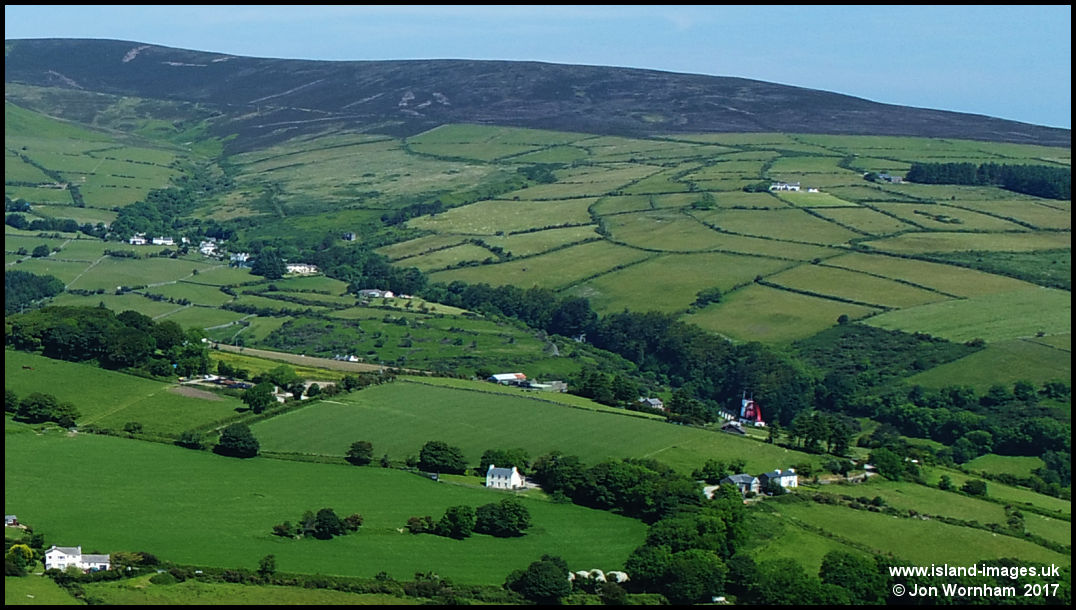 Crop of the previous picture to show the Laxey Wheel almost hidden in its valley