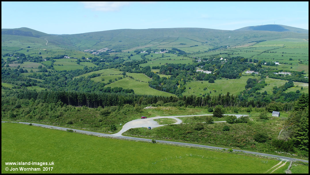 Aerial view of Axnfell Plantation car park, with Glen Roy and Snaefell behind. This is one of the 26 official '