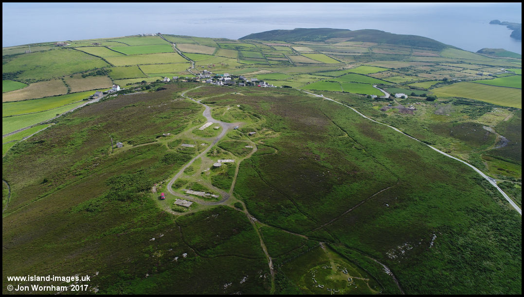 Mull Hill with the WW2 Radar site on the top, Cregneash Village behind