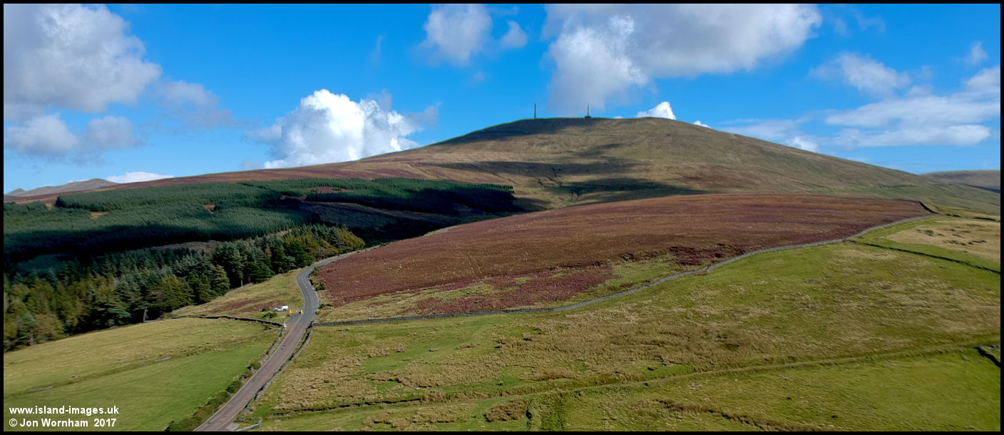 Looking across moorland and forest plantations to Snaefell
