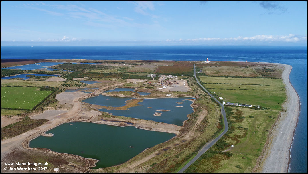 Looking to the Point of Ayre.  The buildings on the right of the picture were constructed as barrack huts for the radar site and are now private residences.
