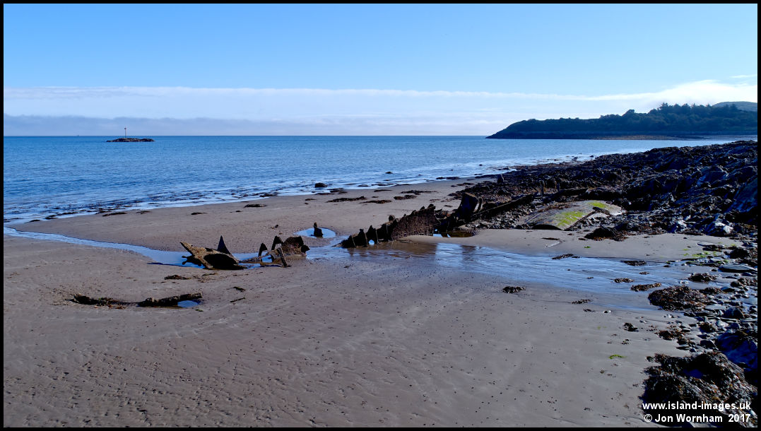 Remains of the steam trawler 'Cevic' on the beach to the south of Ramsey.  The ship was taking shelter in Ramsey Bay but was driven ashore and wrecked in 1927.