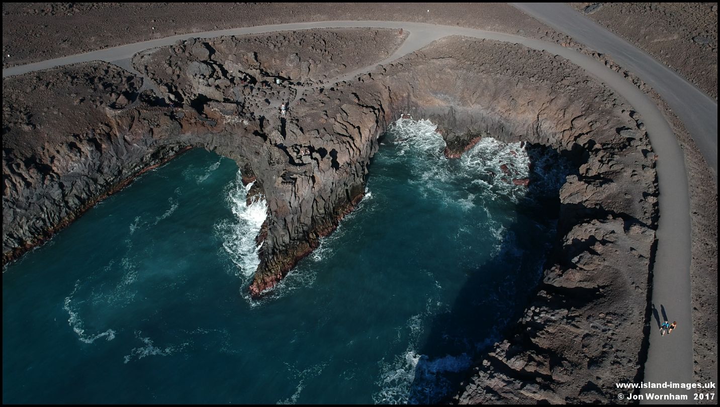 Almost vertical view at Los Hervideros, where the waves crash into caverns in the lava fields
